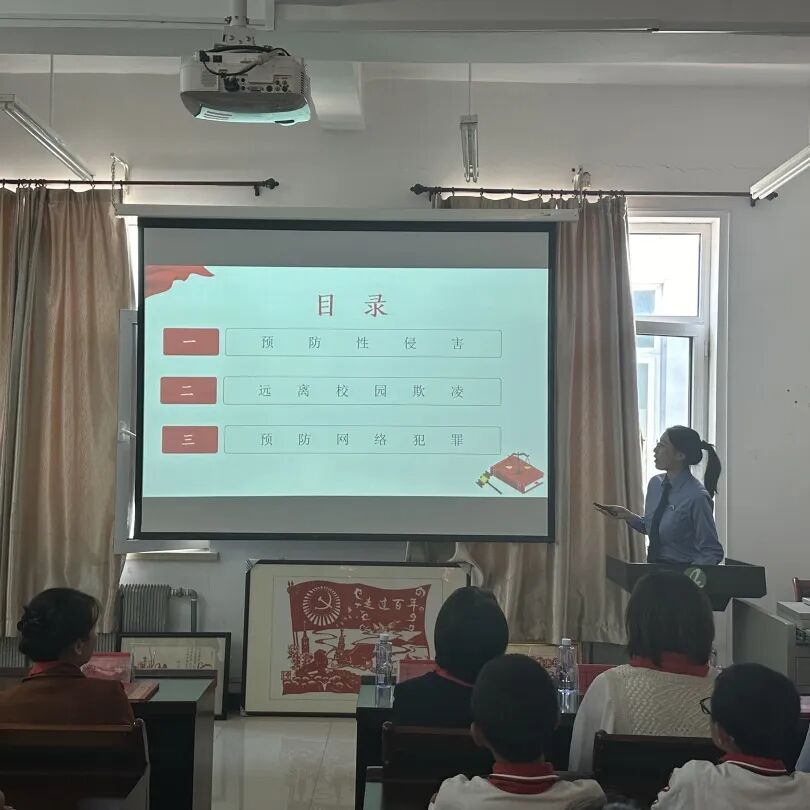 授课中,青年党员、检察官助理杨昕蕊以学校、少年儿童和家长们普遍关注的校园安全、网络安全为主题,从避免遭受性侵害、远离校园霸凌、预防电信网络诈骗三方面入手,重点解读了性侵害犯罪相关法律规定和产生的社会危害后果。引导和提醒孩子们在面对校园霸凌时该如何自我保护,从而避免成为校园霸凌的帮凶。告诫大家在面对纷繁复杂的网络世界尤其需保持清醒头脑,通过学法、知法、用法识破电信网络诈骗的常见陷阱,结合播放普法短视频和宣讲所办的身边案(事)例,以案释法说理,帮助同学们提高反诈能力。