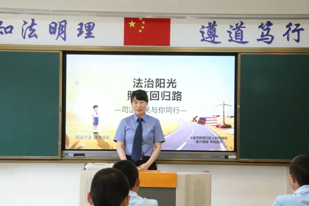 2025年9月16日,大连市旅顺口区人民检察院“蓝汐姐姐”未检团队在秋季开学季,探索建立以“一封来自好友的书信、一堂量身定制的法治课程、一本振奋人心的书籍”为载体的“三个一”帮教工作法,开展了题为“法治阳光照亮回归路”的主题宣传活动。在市检察院带领下,联合公安、司法等部门走进专门教育学校大连市第八十四中学,为小浩(化名)等8名因不满16周岁不予刑事处罚而接受矫治对象送去特殊的“开学第一课”,开启了矫治教育跟踪监督之路。
