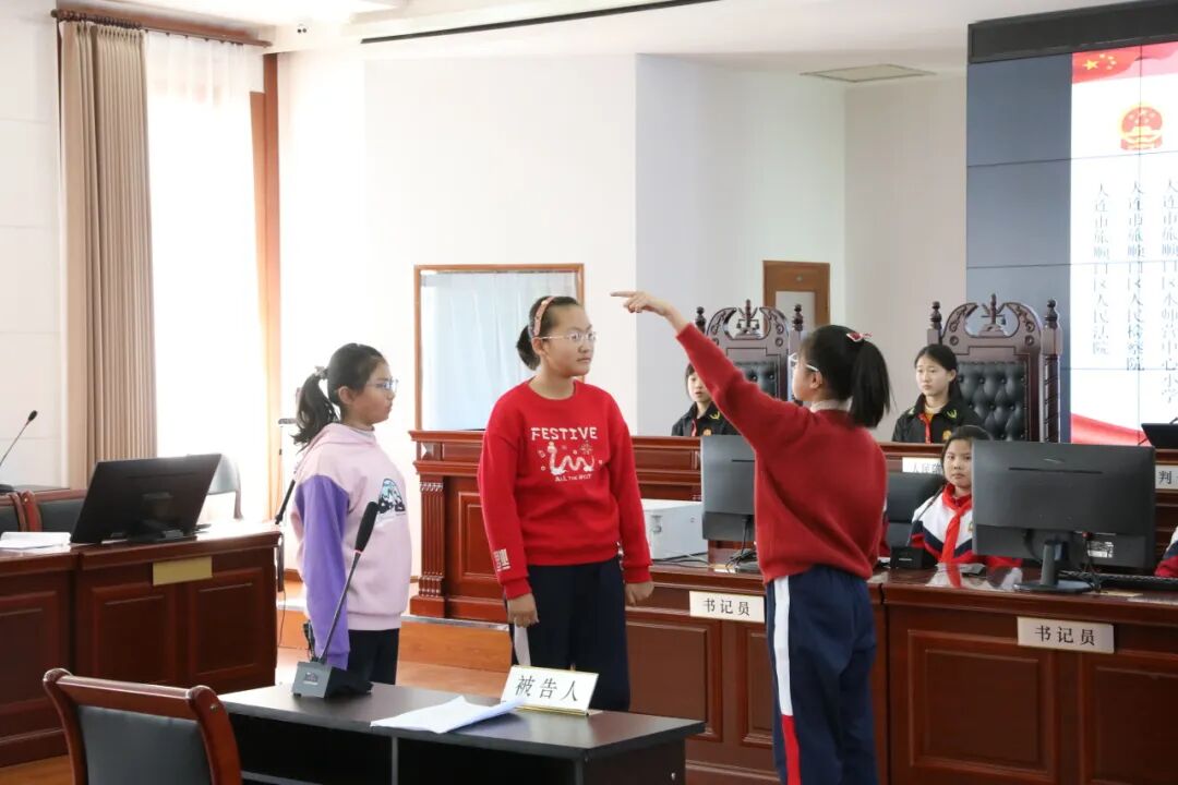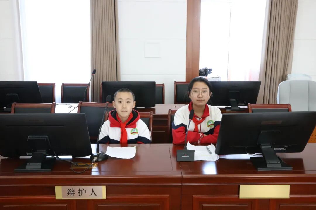 模拟法庭现场庄严肃穆,7名小学生身着法袍、检服,分别扮演了法官、检察官。其他学生分别扮演被告人、辩护人、书记员等角色,亲身体验了一场规范、严谨的庭审过程。从宣读起诉书、举证质证,到法庭辩论、被告人最后陈述,每一个环节都紧张有序,生动再现了真实庭审的全过程。
