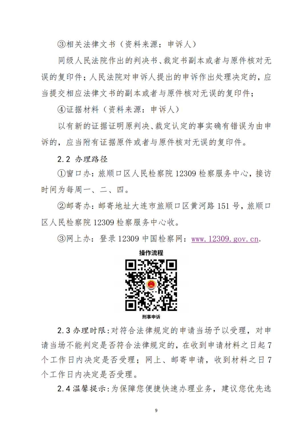 【为民】旅顺口区人民检察院办事不找关系指南(控申篇)